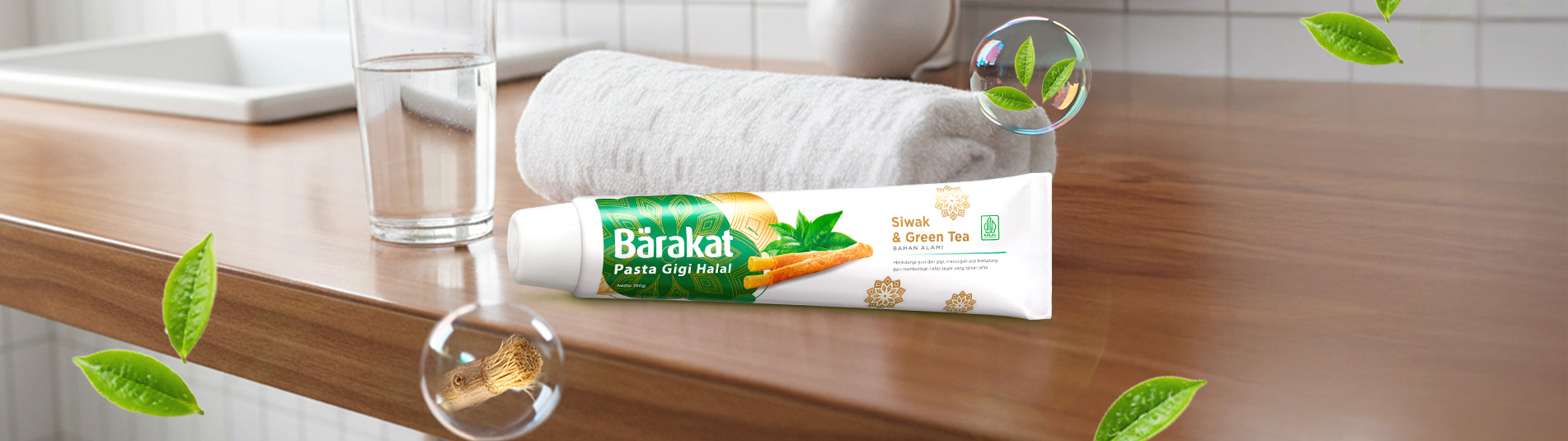 Kini sudah hadir pasta gigi halal yang menjawab solusi gigi kuat kamu, lho! Yait, pasta gigi Barakat dengan kandungan bahan alami yaitu green tea & siwak . Dua kombinasi ini tentu sangatlah baik untuk kesehatan gigi kamu. Kandungan siwaknya bisa melawan bakteri penyebab gigi berlubang plus kandungan green tea yang menyegarkan mulut, pastinya! Eits… Nggak cuma itu aja! Faktanya green tea punya banyak manfaat baik untuk kesehatan gigi kamu. Yuk, simak fakta lainnya seputar green tea, disini!