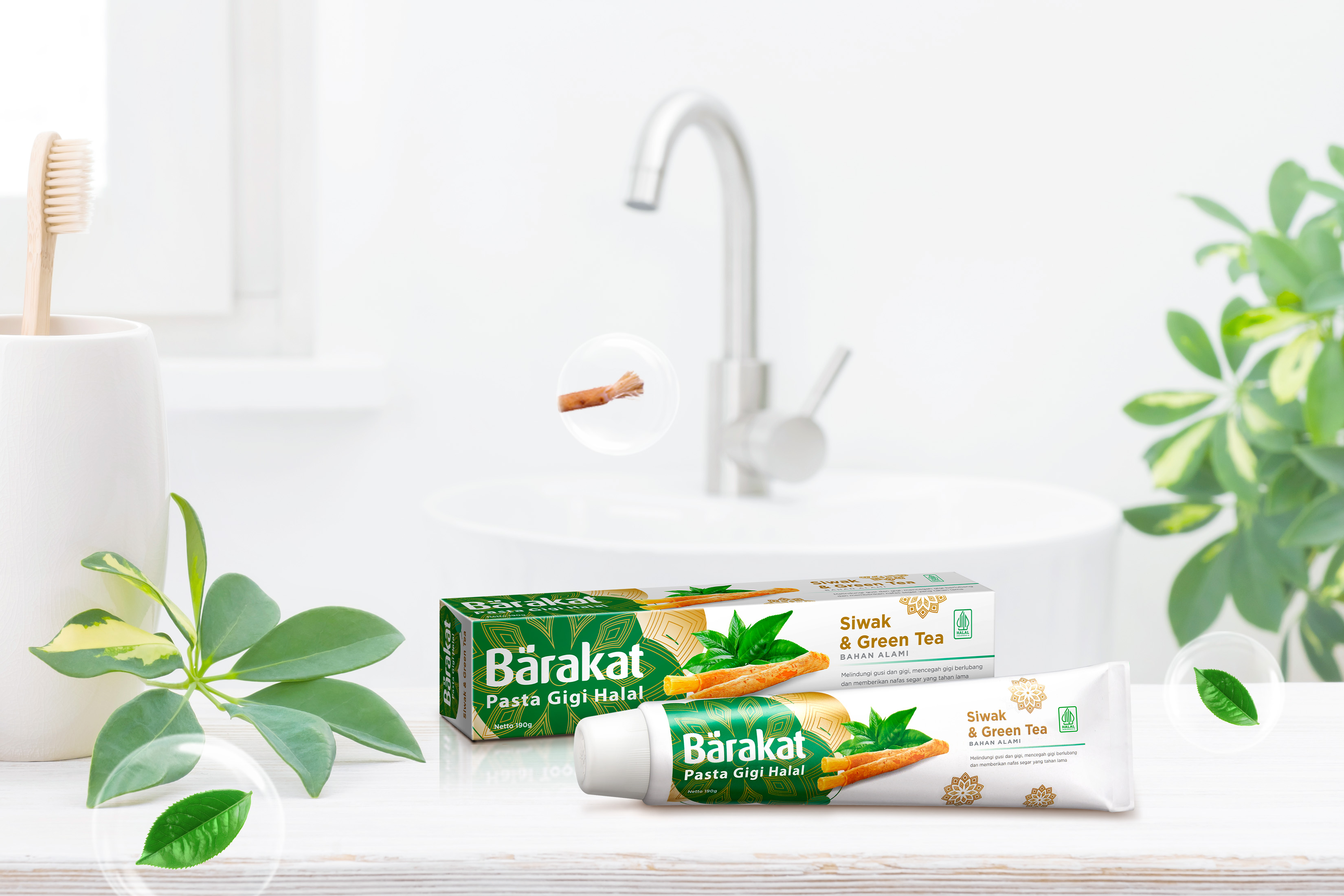 Kini sudah hadir pasta gigi halal yang menjawab solusi gigi kuat kamu, lho! Yait, pasta gigi Barakat dengan kandungan bahan alami yaitu green tea & siwak . Dua kombinasi ini tentu sangatlah baik untuk kesehatan gigi kamu. Kandungan siwaknya bisa melawan bakteri penyebab gigi berlubang plus kandungan green tea yang menyegarkan mulut, pastinya! Eits… Nggak cuma itu aja! Faktanya green tea punya banyak manfaat baik untuk kesehatan gigi kamu. Yuk, simak fakta lainnya seputar green tea, disini!