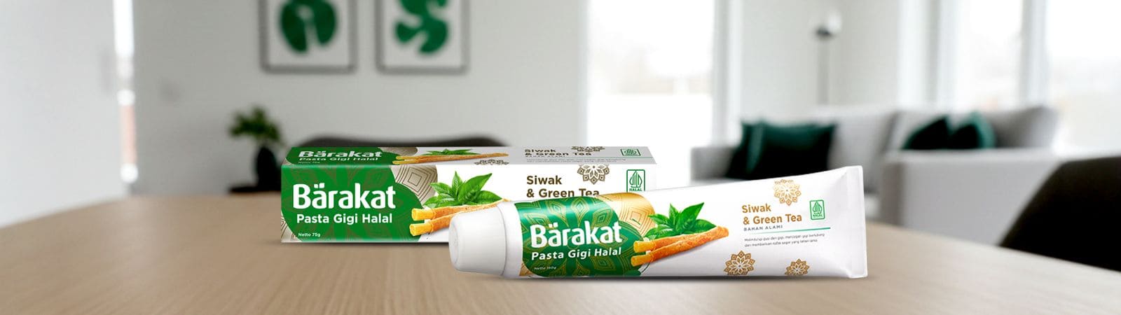 Kini sudah hadir pasta gigi halal yang menjawab solusi gigi kuat kamu, lho! Yait, pasta gigi Barakat dengan kandungan bahan alami yaitu green tea & siwak . Dua kombinasi ini tentu sangatlah baik untuk kesehatan gigi kamu. Kandungan siwaknya bisa melawan bakteri penyebab gigi berlubang plus kandungan green tea yang menyegarkan mulut, pastinya! Eits… Nggak cuma itu aja! Faktanya green tea punya banyak manfaat baik untuk kesehatan gigi kamu. Yuk, simak fakta lainnya seputar green tea, disini!