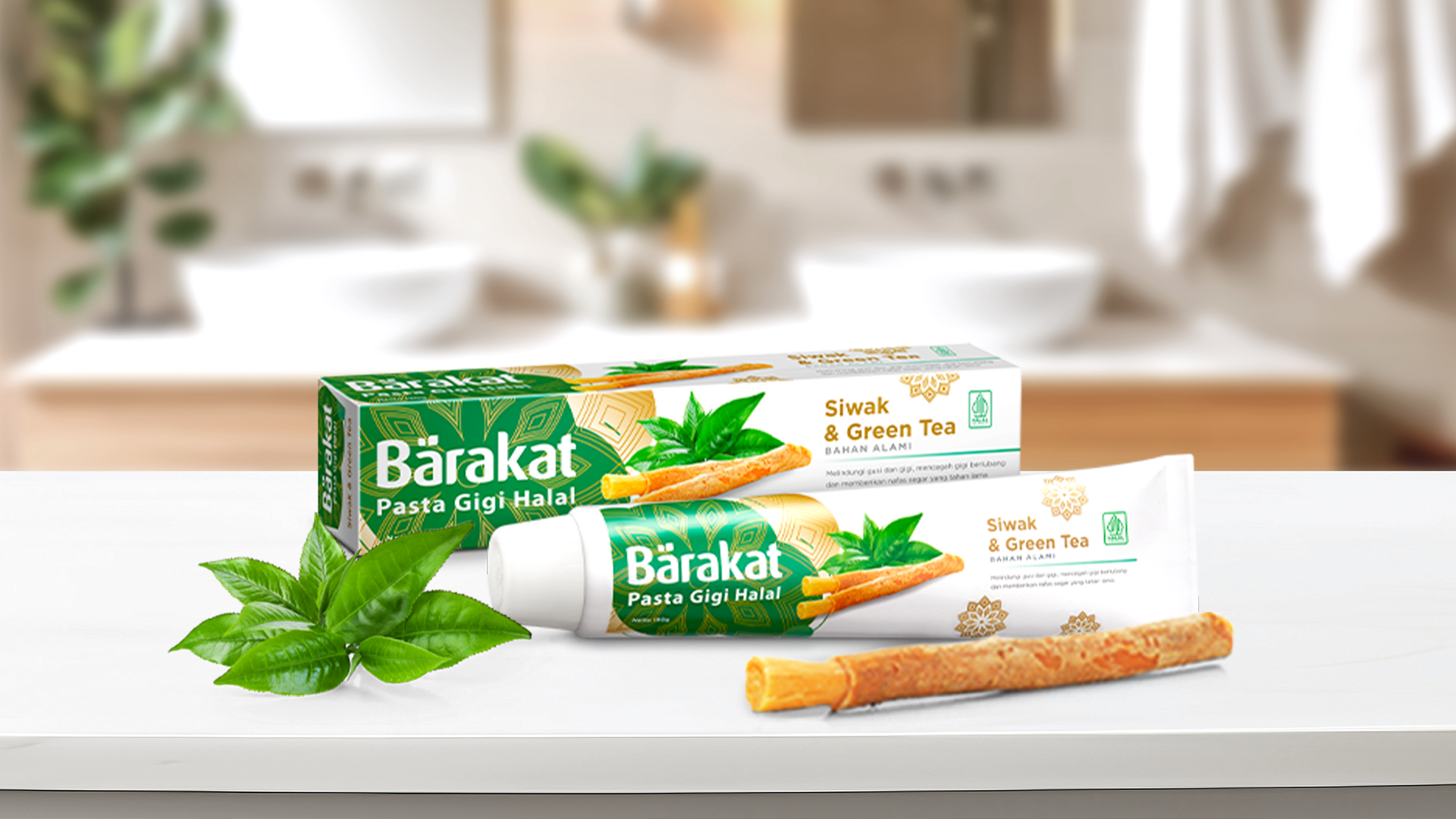 Pasta gigi Barakat mengandung bahan alami seperti Siwak dan Green Tea untuk menyegarkan nafas serta menjaga gigi tetap sehat. Beli pasta gigi Barakat sekarang di minimarket dan e-commerce favorit kamu ya!