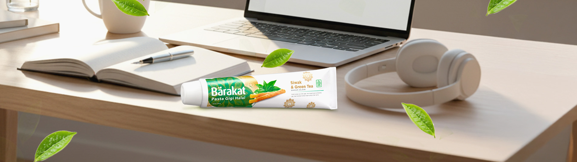 Kini sudah hadir pasta gigi halal yang menjawab solusi gigi kuat kamu, lho! Yait, pasta gigi Barakat dengan kandungan bahan alami yaitu green tea & siwak . Dua kombinasi ini tentu sangatlah baik untuk kesehatan gigi kamu. Kandungan siwaknya bisa melawan bakteri penyebab gigi berlubang plus kandungan green tea yang menyegarkan mulut, pastinya! Eits… Nggak cuma itu aja! Faktanya green tea punya banyak manfaat baik untuk kesehatan gigi kamu. Yuk, simak fakta lainnya seputar green tea, disini!