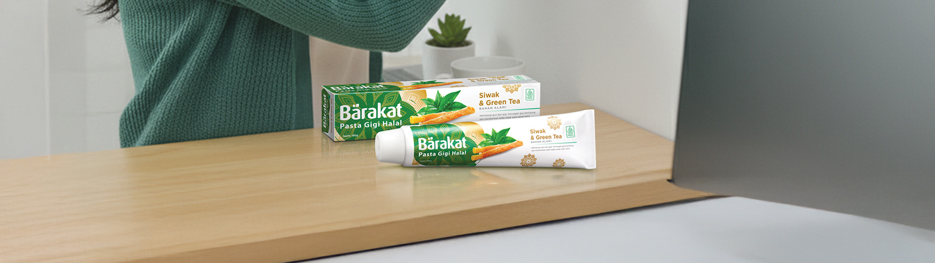 Kini sudah hadir pasta gigi halal yang menjawab solusi gigi kuat kamu, lho! Yait, pasta gigi Barakat dengan kandungan bahan alami yaitu green tea & siwak . Dua kombinasi ini tentu sangatlah baik untuk kesehatan gigi kamu. Kandungan siwaknya bisa melawan bakteri penyebab gigi berlubang plus kandungan green tea yang menyegarkan mulut, pastinya! Eits… Nggak cuma itu aja! Faktanya green tea punya banyak manfaat baik untuk kesehatan gigi kamu. Yuk, simak fakta lainnya seputar green tea, disini!