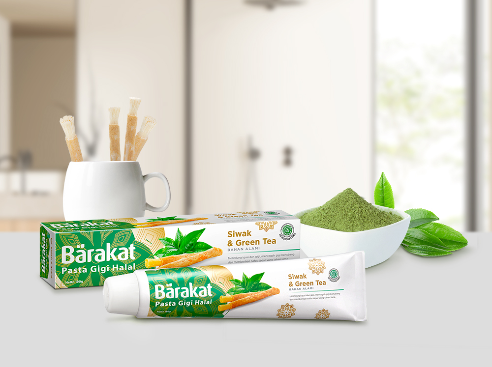 Kini sudah hadir pasta gigi halal yang menjawab solusi gigi kuat kamu, lho! Yait, pasta gigi Barakat dengan kandungan bahan alami yaitu green tea & siwak . Dua kombinasi ini tentu sangatlah baik untuk kesehatan gigi kamu. Kandungan siwaknya bisa melawan bakteri penyebab gigi berlubang plus kandungan green tea yang menyegarkan mulut, pastinya! Eits… Nggak cuma itu aja! Faktanya green tea punya banyak manfaat baik untuk kesehatan gigi kamu. Yuk, simak fakta lainnya seputar green tea, disini!